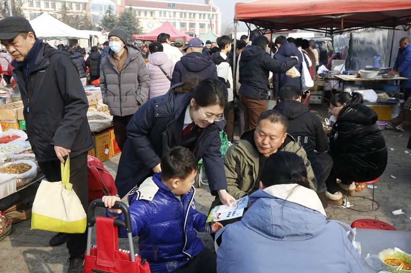 检察干警们穿行于集市的人群之中,通过发放宣传资料、现场答疑解惑等多种形式,以“唠家常”的方式向赶集群众和摆摊商户普及相关法律知识,对过年期间常见的生活法律风险进行提示,让大家平安快乐过新年。